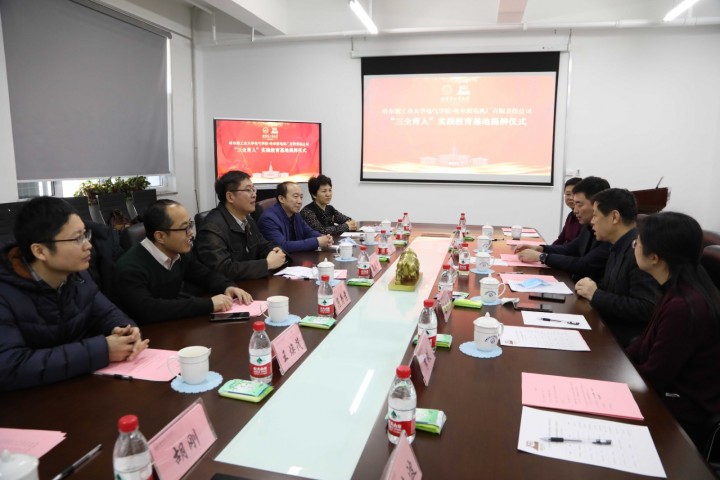 2020年12月29日上午,哈尔滨工业大学体育直播 —哈尔滨电机厂有限责任公司“三全育人”实践教育基地成立揭牌仪式在科创大厦K901会议室举行。体育直播 党委书记慕永国,副院长杨明、聂秋月及学院相关教授出席此次仪式。