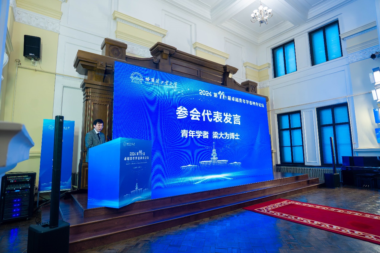 在21日上午的学校神舟论坛主论坛中,我院参会学者梁大为博士作为青年学者代表发言,交流了自己成长的心路历程,畅谈在科学研究与人才培养工作中的心得感悟和经验思考。