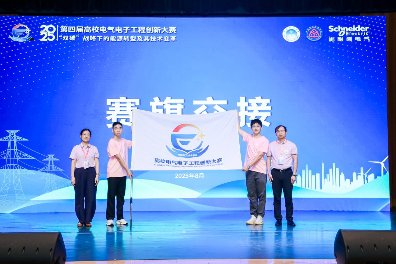 高校电气电子工程创新大赛已成功举办四届,赛事规模和影响力与日俱增。旨在通过搭建赛事平台促进产教融合,培育具备创新能力、能够解决复杂工程问题、有国际视野的新时代工程师,助力科技强国建设。闭幕式上,华南理工大学与哈尔滨工业大学进行了大赛赛旗交接,我院将承办2026年第五届高校电气电子工程创新大赛全国总决赛。