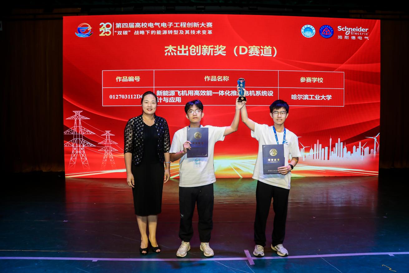 在决赛中,由代佳鑫、蔡扬智、佟海奇、唐毅博、肖瑞祺(指导教师张成明、王明义)所完成的项目“新能源飞机用高效能一体化推进电机系统设计与应用”荣获特等奖同时获“杰出创新奖”;由本科生张格玮、李美灵、杨傲(指导教师麦建伟、李一梁)所完成的项目“面向电动汽车应用的宽范围高效无线电能传输系统”荣获特等奖;由马翊嘉、田为、杨弘信(指导教师李一梁、麦建伟)所完成的项目“DC/DC双向功率变换器设计”荣获一等奖。充分展现了我院学子在电气工程领域的创新能力和卓越风采。